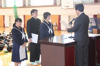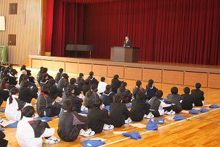 校長先生のお話の後、生徒指導主事の先生から話がありました。