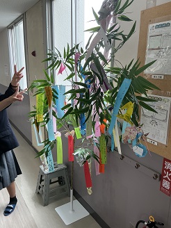 愛知県は、本日梅雨入り。しかし、2年生の教室前はすでに笹に短冊が飾られた七夕の雰囲気です。皆さんの願いが叶いますように。
