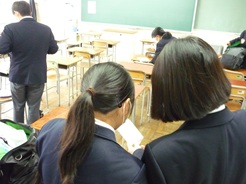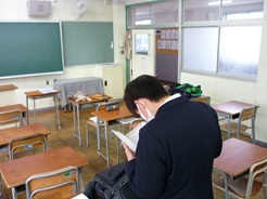 3年生の教室をのぞいたら、登校早々友達と時事問題を確認したり、問題集をチェックしてたりしている姿がありました。
