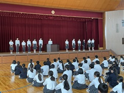 10月20日の朝会で、後期委員会委員長・副委員長、学級委員・学級書記の認証をしました。各委員会、各学級のリーダーとして頑張ってください。