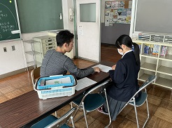 YDK(Y やれば D できる K 北中生)プロジェクトも今年で3年目。委員長が担当の先生とプロジェクトの内容について相談していました。学校が明るくなって、全校生徒が楽しめる企画になることでしょう。