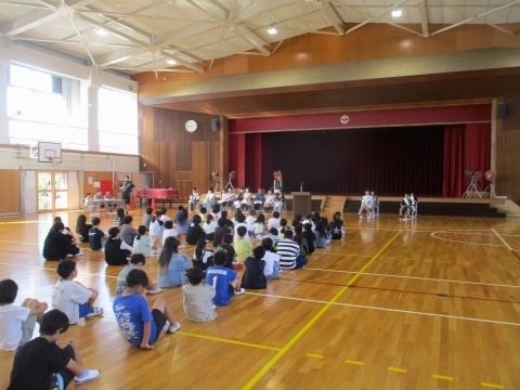 最後に、低学年と高学年で向き合って全校合唱をしました。体育館中に子どもたちの元気な歌声が響き渡っていました。