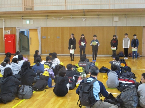 次に、読書感想文で優秀な成績を修めた児童の表彰を行いました。
