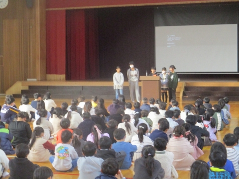 続いて、後期児童会役員の認証を行いました。代表の児童が、学校をよりよくしていきたいと意気込みを伝えました。