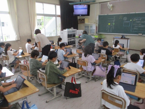 タブレットの学習アプリを使って、復習に取り組んでいました。みんな意欲的に取り組んでいました。