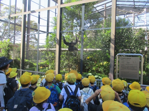 今日、1・2年生で東山動植物園に出かけました。天気は晴天で、遠足日和でした。日中は汗ばむ暑さでしたが、こまめに休憩や水分補給し、体調を崩すことなく、最後まで楽しく見学することができました。