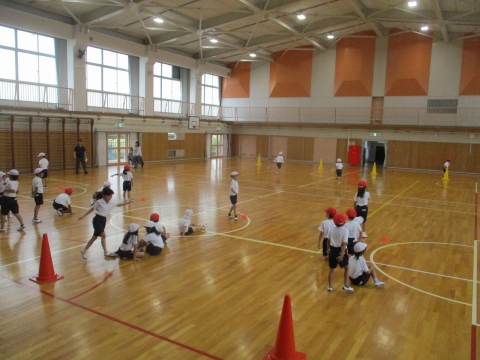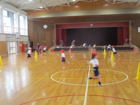 リレーの練習をしていました。確実にバトンを渡せるように渡し手も、受け手も気をつけてバトンパスをしていました。