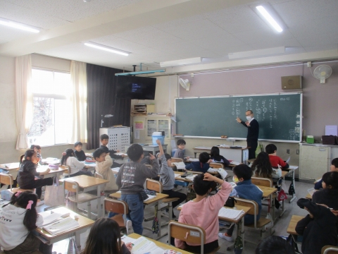 「村まつり」という曲を学習していました。お祭りの気分で生き生きと歌っていました。