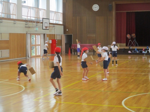用具を使ったいろいろなコースを友達と楽しみながら、走ったり跳んだり運んだりしていました。