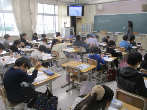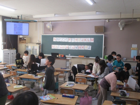 アルファベットを使ったコミュニケーション活動を行っていました。みんな意欲的に取り組んでいました。