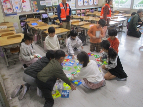 今日は、あま市防災ネットの方々を講師にお招きして、防災教室を行いました。さまざまな活動を通して、防災についての知識を身に付けたり、防災意識を高めたりしました。