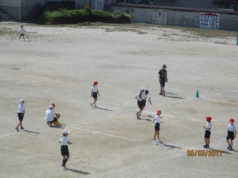 これまで練習してきたバトンパスを意識しながら、グループでタイムを縮めようと一生懸命取り組んでいました。