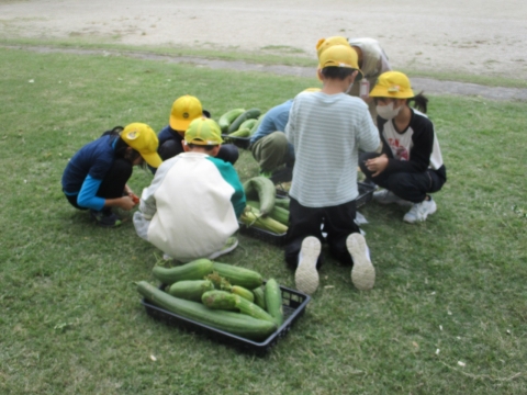 ヘチマの収穫と観察、ネットの後片付けをしていました。
