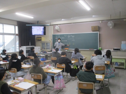割合を使った問題に取り組んでいました。場面を具体的に捉えたり、比べる事柄の関係性を確かめたりしながら、問題を解いていました。