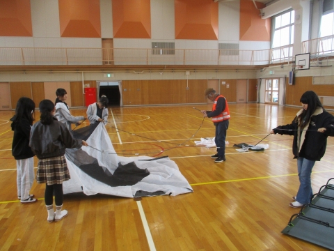 今日は、あま市防災ネットの方々を講師にお招きして、防災教室を行いました。さまざまな活動を通して、防災についての知識を身に付けたり、防災意識を高めたりしました。
