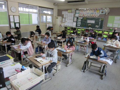 1時間目は国語の授業でした。「たぬきの糸車」を読み進めました。