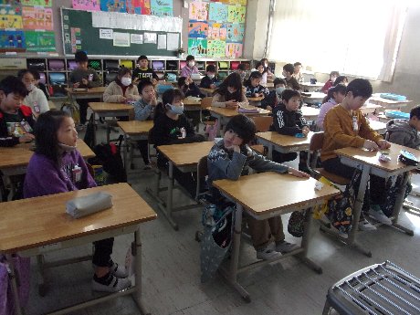 1時間目は国語の授業でした。初めに今日の連絡をしました。