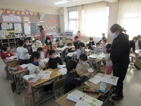 5月29日(火)3時間目は算数の授業でした。問題の答え合わせをしました。早く終わった子は、読書をして待っていました。