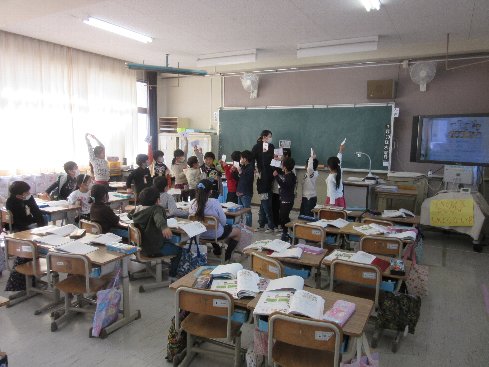 2時間目は初めての英語の授業でした。英語教室でALTの先生と楽しく英語の勉強をしました。
