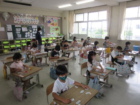 1時間目は算数の授業でした。計算カードを使って足し算の練習をしました。