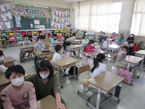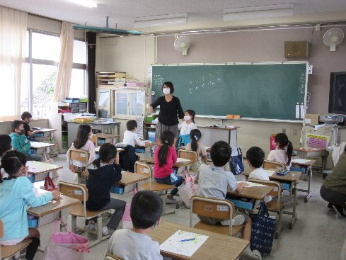 2時間目は音楽の授業でした。先生の発声をまねてこだまに変身しました。最後には校歌の練習をしました。