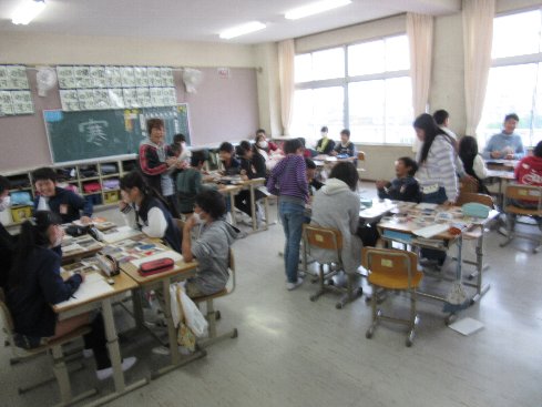 2時間目は図工の授業でした。愛知県美術館が作ったあいpackという鑑賞学習のキットを使って、作品鑑賞をしました。