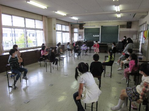 3時間目は音楽の授業でした。くるみ割り人形でどんな風に行進したらいいか考えて実際に発表しました。