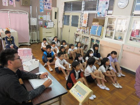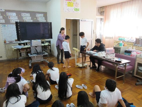 1時間目は発育測定を行いました。11月に入ったと言うことで、良い姿勢について教えてもらった後、体重を測りました。