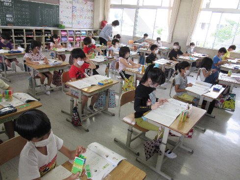 1時間目は算数の授業でした。21-7のひき算について考えました。