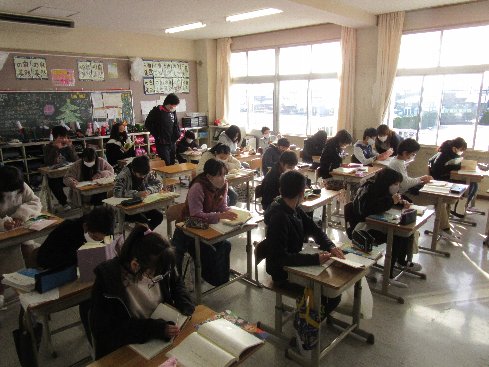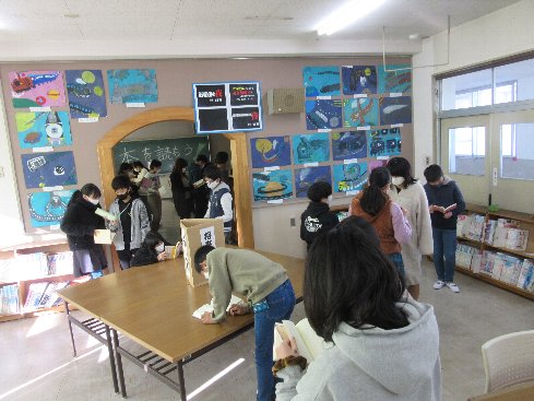 1時間目は国語の授業でした。詩を朗読して紹介するために、どんな詩がいいか、図書室で探しました。