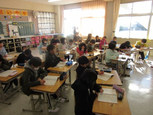 6月1日(金)担任の先生が陸上競技会の役員で出張のため、4年生は1日中テストでした。よく頑張りました。
