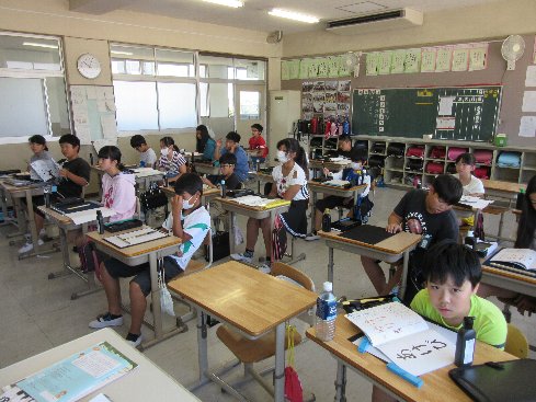 2時間目は書写の授業でした。「あけび」を練習する前に、「ゆり」を書いて、平仮名の曲げや払いを練習しました。