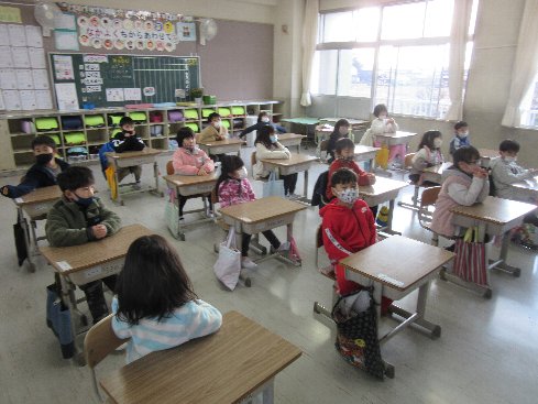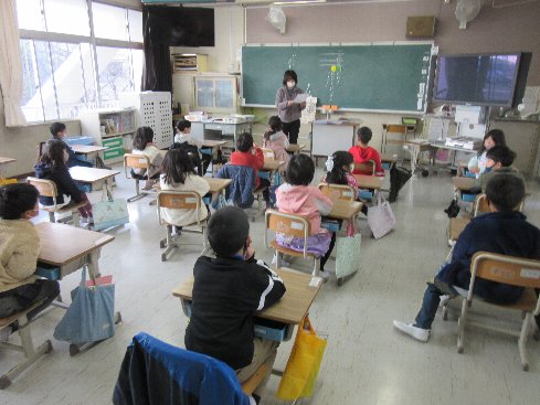 1時間目は図工の授業でした。授業の前にウインターフェスティバルについての説明を聞きました。