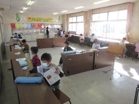 1時間目は音楽の授業でした。鍵盤ハーモニカで「なかよし」の練習をしました。