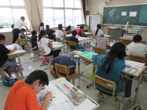 1・2時間目は図画工作の授業でした。「わたしの大切な風景」ということで、抽象的な絵の表現を勉強しました。