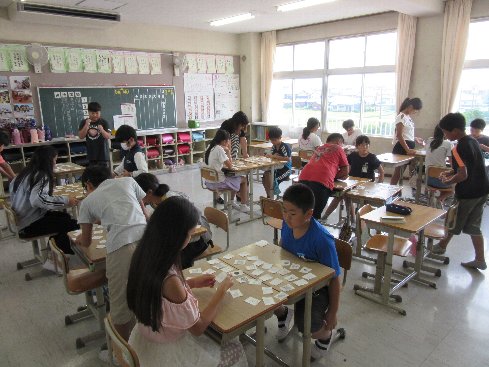 1時間目は算数の授業でした。面積の求め方について学習した後、「学習カルタ」をしました。