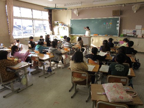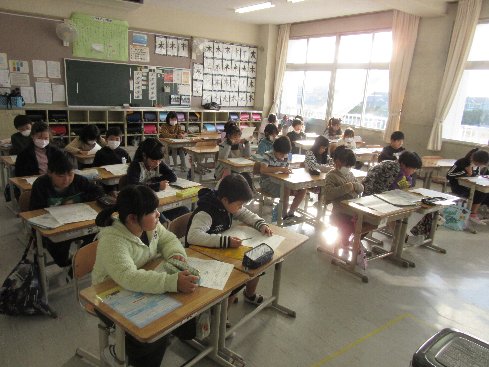 1時間目は、広報や冬休みの日誌など、たくさんの配布物を配ったり、冬休みの目標を考えたりしました。