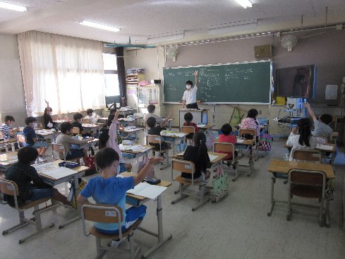 2時間目は算数の授業でした。かけ算を使って問題を解く方法について考えました。