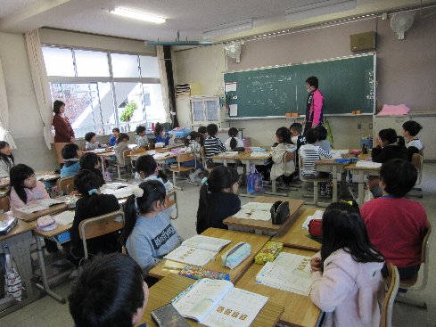 5月30日(水)3時間目は算数の授業でした。章末問題に取り組みました。早くできた子が「小さい先生」になって、理解がまだの子のお手伝いをしていました。