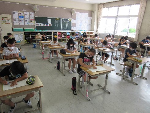 3時間目は国語の授業でした。「今年の夏休み」の作文を書きました。