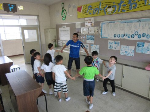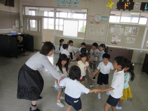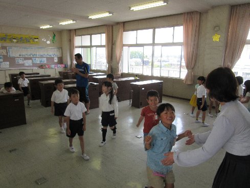 3時間目は音楽の授業でした。「ひらいたひらいた」を踊りながら歌いました。