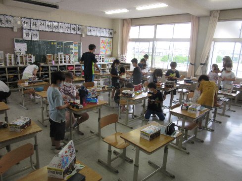 5時間目は理科の授業でした。電気のはたらきで、直列と並列の出力の違いを車を走らせて実験しました。