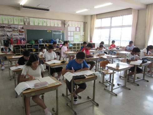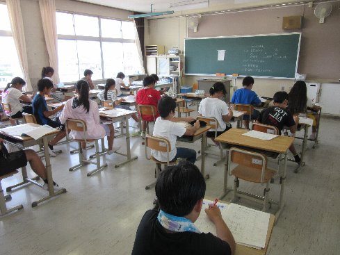 出校日でした。着衣水泳の後、宿題の答え合わせをしました。