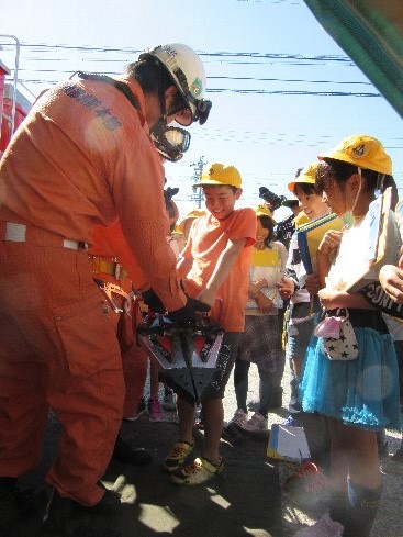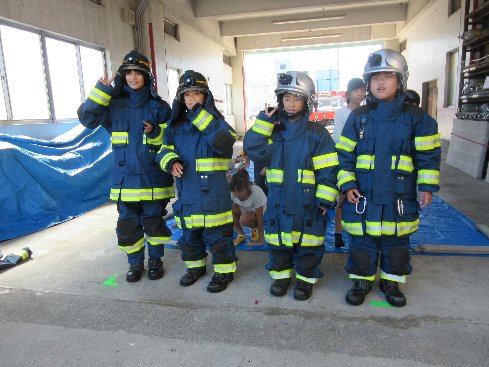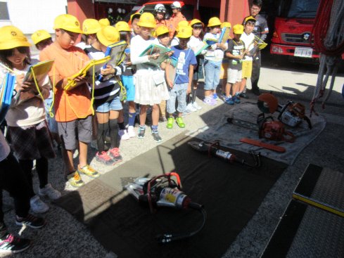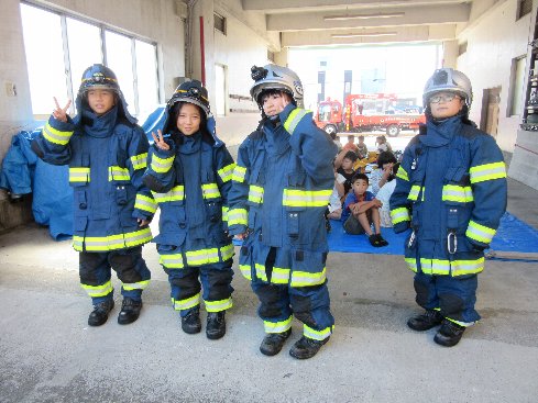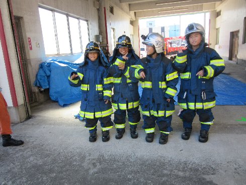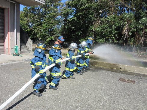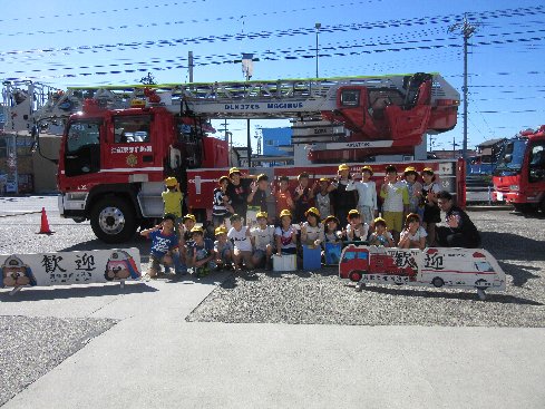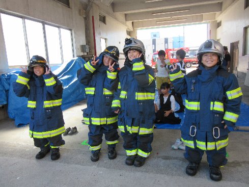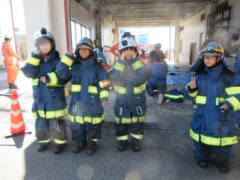 午前中、海部東部消防署へ見学に出かけました。消防署の特殊車両の説明を受けたり、放水体験をしたり、はしご車体験をしたり、署員の方の訓練を見学したりしました。消防署の皆さんありがとうございました。