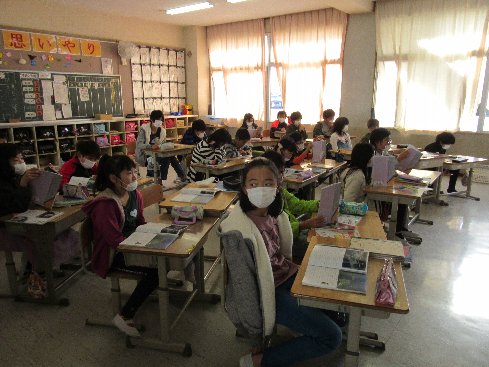 4月11日(水)3時間目は音楽の授業でした。「子どもの世界」を、まずはCDを視聴して。その後みんなで歌いました。