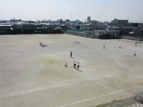 3時間目は体育の授業でした。リレーのグループ決めのための100mの計測をしてから、リレーを行いました。