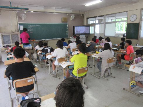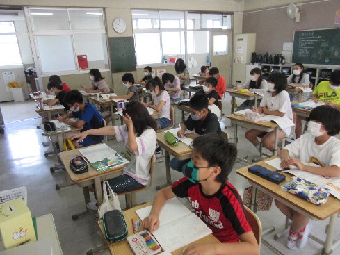 1時間目は算数の授業でした。線対称の図形について考えました。