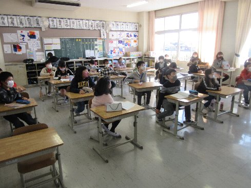 3時間目は理科の授業でした。「寒くなると」動物はどんな様子なのか、調べる方法を確認してから、実際に外に出て観察しました。