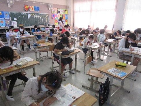 2時間目は算数の授業でした。問題を解いて、その考え方について言葉で説明できるようにしました。