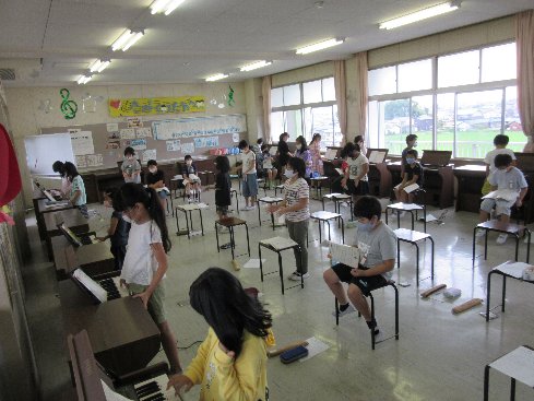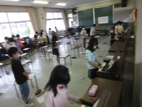 1時間目は音楽の授業でした。「楽しいマーチ」を手拍子とオルガンで演奏しました。